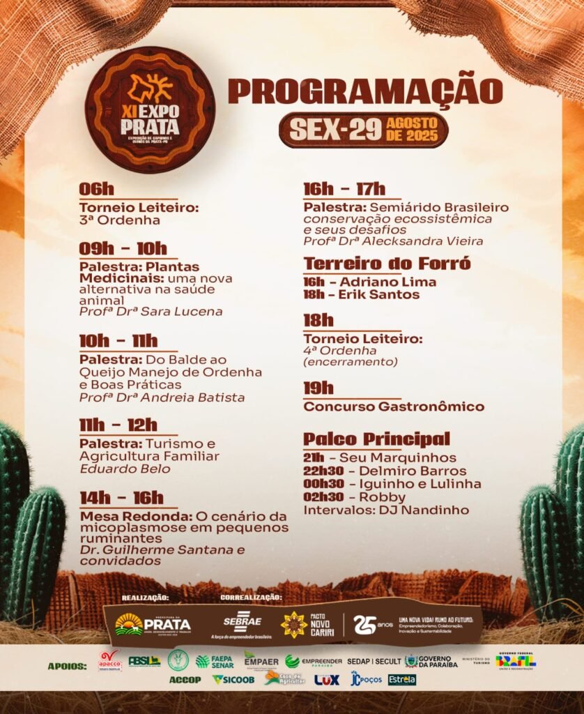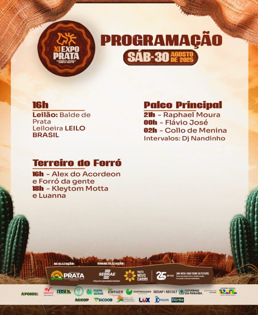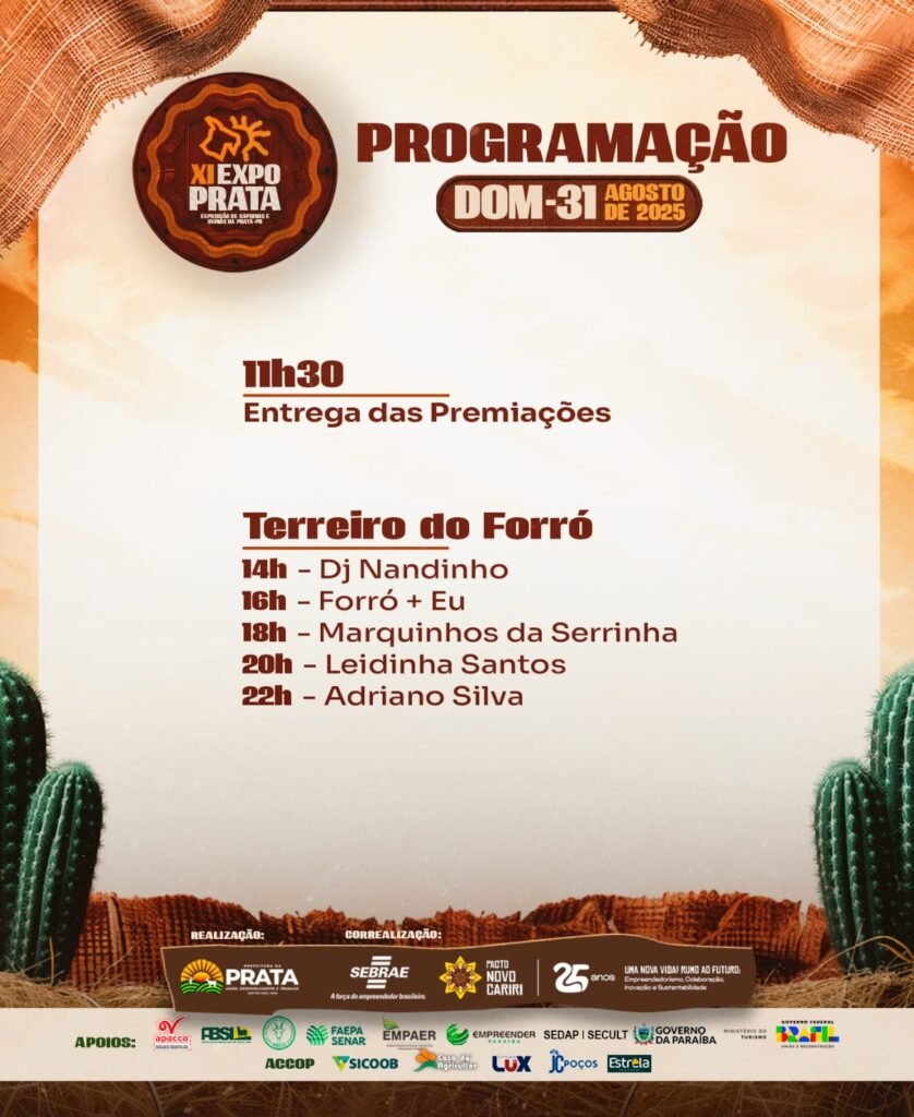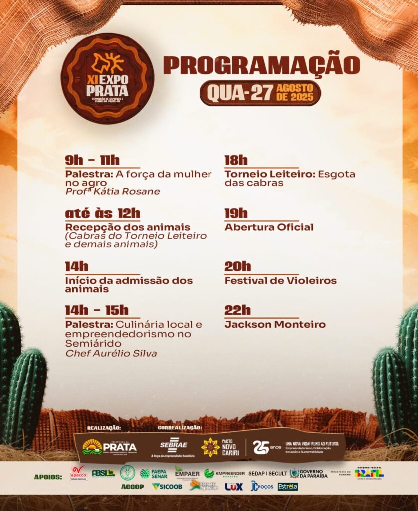 🎶 Ao longo de toda a Expoprata, além das competições, o público poderá prestigiar grandes atrações culturais, forró, violeiros, shows gospel, artistas regionais e nacionais, tornando o evento um verdadeiro marco para a cultura e a economia do Cariri paraibano.