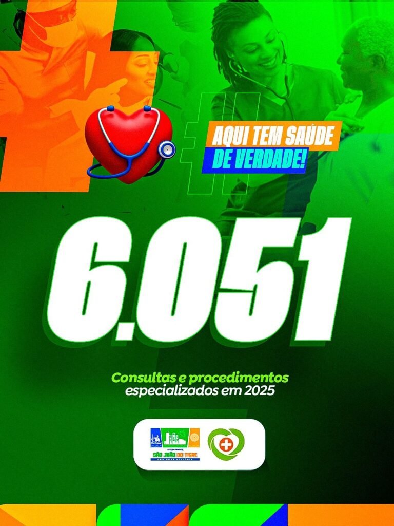 São João do Tigre celebra um marco histórico na área da saúde: 6.051 consultas e procedimentos especializados realizados para a população em 2025. Esse número expressivo evidencia o compromisso da gestão municipal com o bem-estar dos cidadãos e a melhoria contínua dos serviços públicos.
