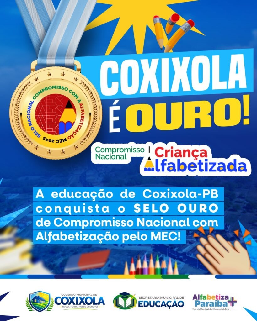 O município de Coxixola, no Cariri paraibano, alcançou um importante reconhecimento na área da educação ao conquistar o Selo Ouro do Compromisso Nacional com a Alfabetização, concedido pelo Ministério da Educação (MEC). A certificação destaca os municípios que se sobressaem nas ações voltadas à alfabetização das crianças na idade adequada.