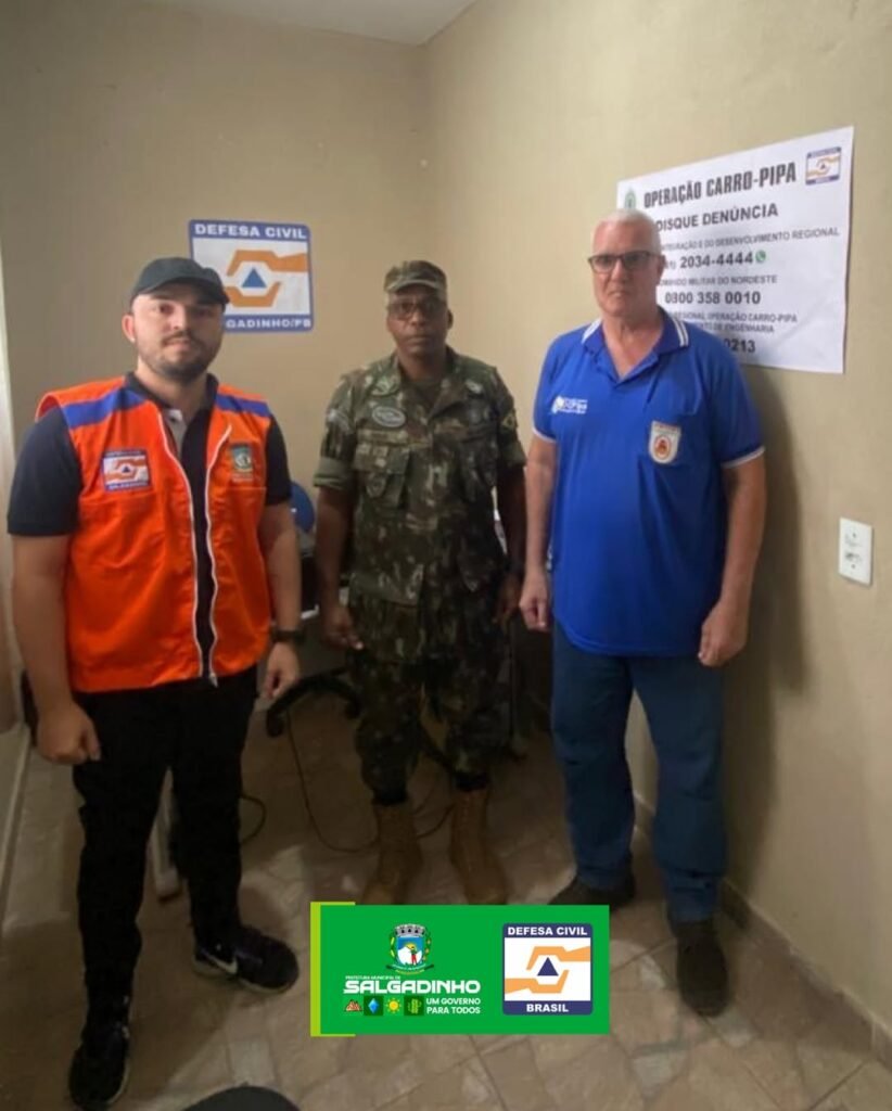 Na manhã desta quarta-feira (09), o município de Salgadinho recebeu a visita do 2º Tenente Maia, Chefe da Equipe de Fiscalização da Operação Carro-Pipa (OP), na sede da Coordenadoria Municipal de Defesa Civil (COMDEC). A agenda teve como objetivo realizar um trabalho de fiscalização e atualização do programa que abastece comunidades afetadas pela seca na região.