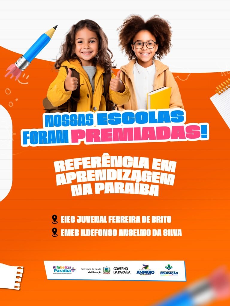 A educação do município de Amparo conquistou mais um importante reconhecimento estadual. As escolas EIEC Juvenal Ferreira de Brito e EMEB Ildefonso Anselmo da Silva foram premiadas com o Prêmio Escola Referência em Aprendizagem, concedido pelo programa Alfabetiza Mais Paraíba.