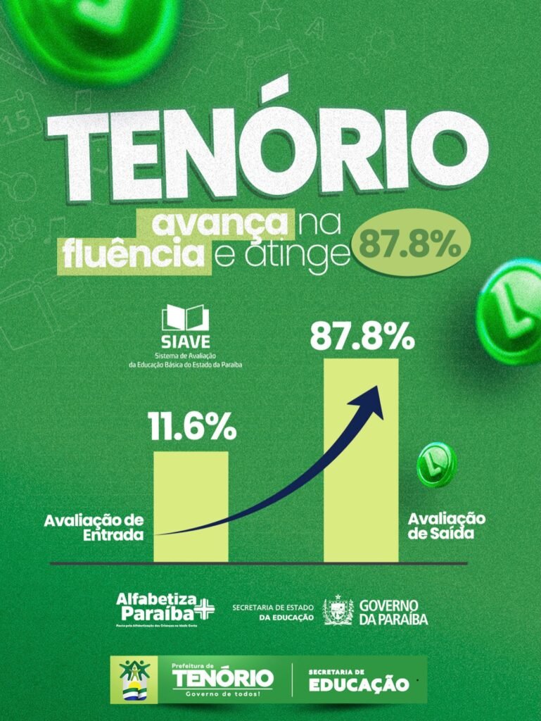 A conquista é fruto de um trabalho coletivo, pautado no planejamento, na dedicação e no propósito de garantir uma educação cada vez mais eficiente. A Prefeitura de Tenório, por meio da Secretaria Municipal de Educação, tem investido em ações pedagógicas voltadas à alfabetização, alinhadas ao Compromisso Nacional Criança Alfabetizada, assegurando que os alunos desenvolvam habilidades essenciais de leitura e compreensão.