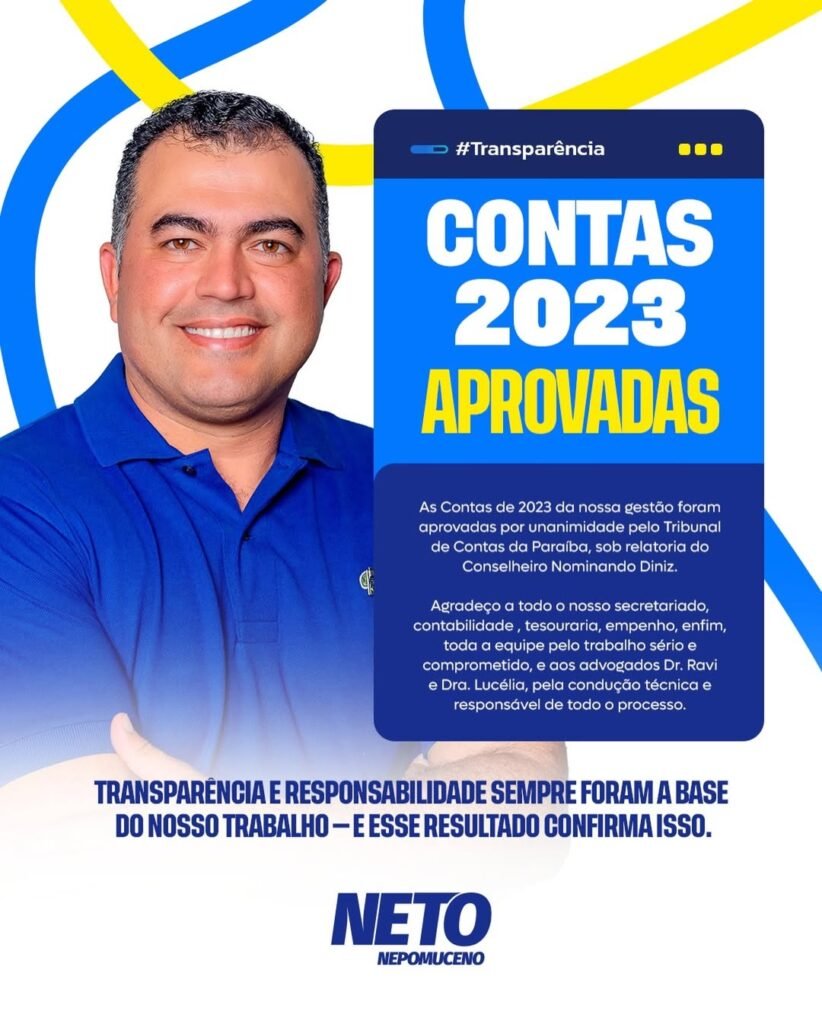 A aprovação das contas reforça o histórico de regularidade fiscal da gestão de Neto Nepomuceno à frente da Prefeitura de Barra de Santa Rosa. O ex-prefeito também ressaltou que a administração sempre priorizou mecanismos de controle e transparência, dando segurança aos investimentos realizados durante seu mandato.