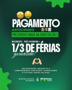 A Prefeitura Municipal de Salgadinho, por meio da Secretaria Municipal de Finanças, realizou o pagamento antecipado do adicional de 1/3 de férias aos profissionais da