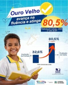 A educação de Ouro Velho segue avançando e colhendo resultados expressivos. De acordo com dados da Fluência em Leitura 2025, o município atingiu o índice