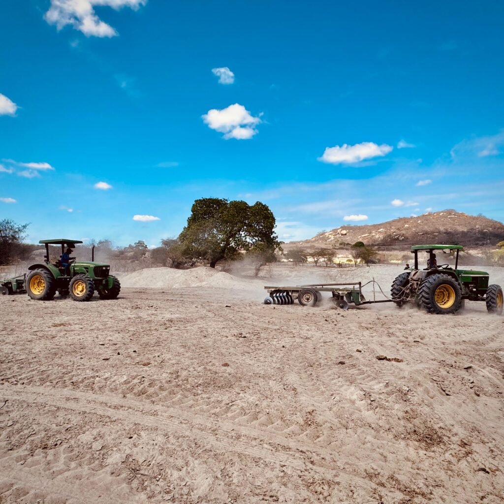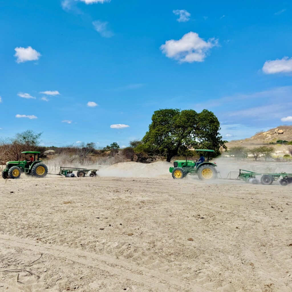 Mesmo enfrentando o período de estiagem, os produtores rurais já se organizam e se planejam para o preparo da terra, aguardando a chegada das chuvas na região. Com esse objetivo, a gestão municipal está disponibilizando tratores e máquinas agrícolas para o corte de terras, garantindo melhores condições para o plantio de culturas como milho e feijão.