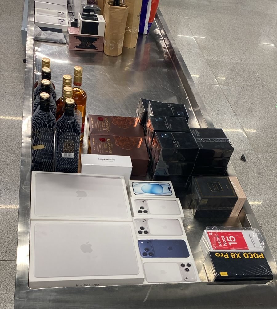 Entre os itens apreendidos estavam cosméticos, equipamentos eletrônicos e valores em moeda estrangeira em espécie. A suspeita é de que os produtos tenham sido introduzidos no país de forma irregular, o que configura infração às normas aduaneiras.