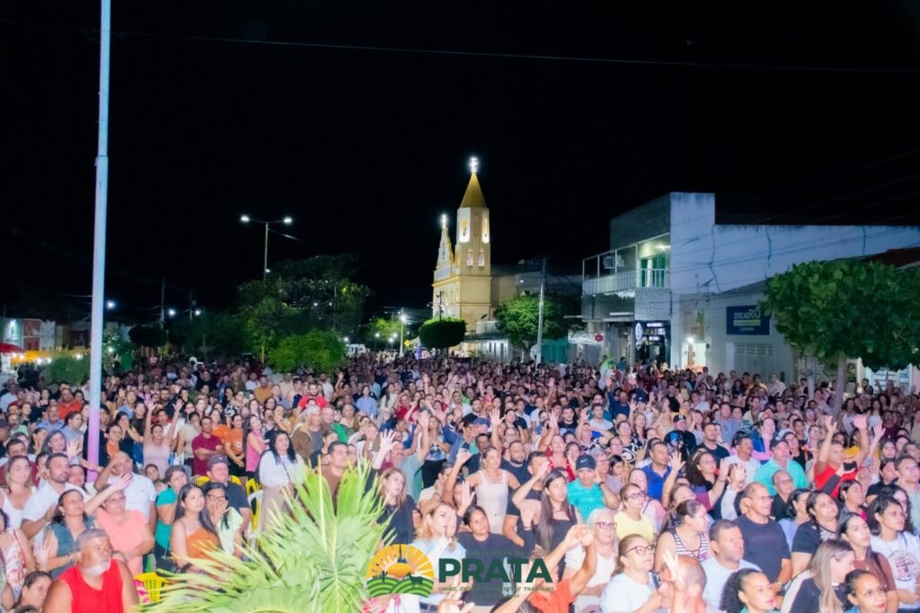 A cidade da Prata, no Cariri paraibano, viveu uma noite de fé, emoção e espiritualidade com o grande show de louvor e adoração do padre Fabrício Timóteo, realizado nesta quinta-feira (17). O evento marcou oficialmente a abertura da Festa da Padroeira Nossa Senhora do Rosário, reunindo milhares de fiéis em um momento de profunda devoção e celebração cristã.
