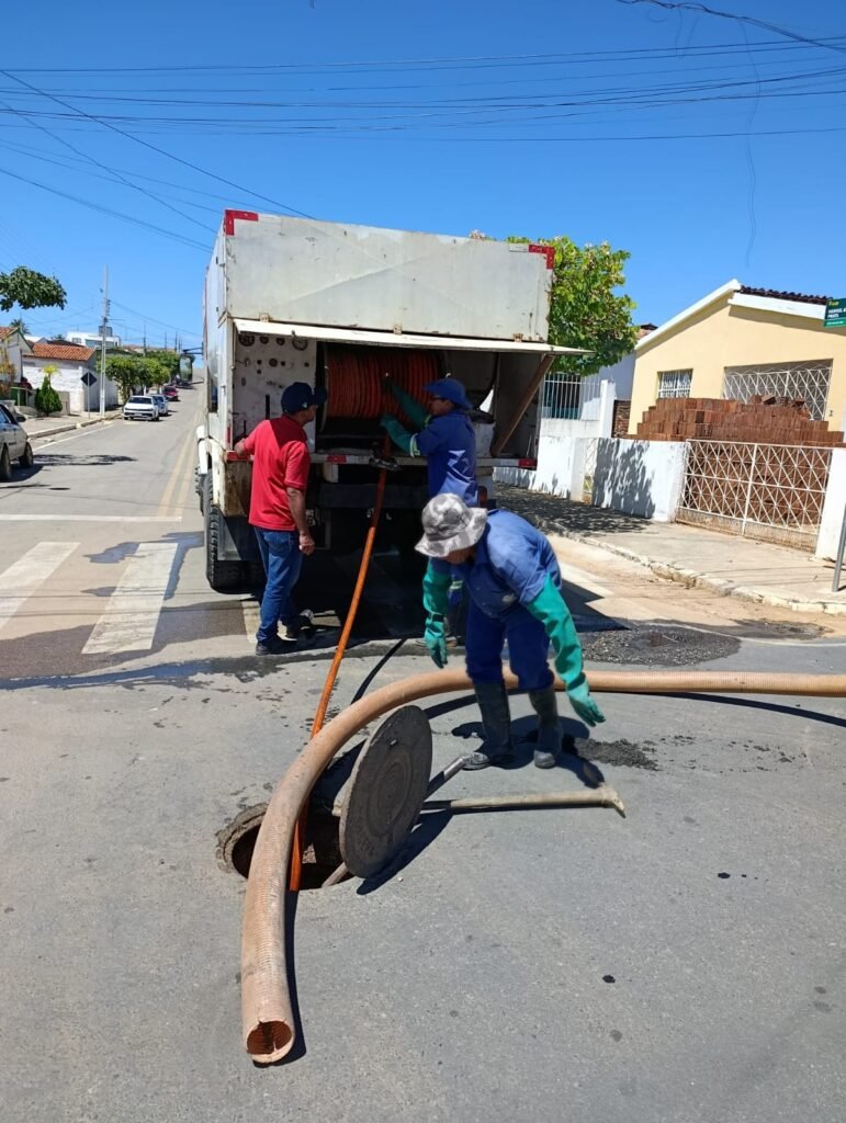 O serviço, que contou com equipes especializadas e caminhões equipados para sucção e desobstrução, tem como objetivo garantir o bom funcionamento da rede de esgotamento sanitário, prevenindo entupimentos, transbordamentos e mau cheiro nas vias públicas.