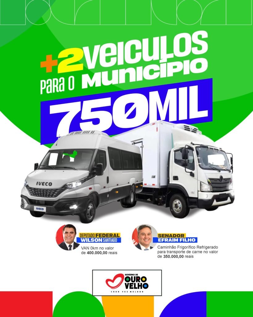 ✅ R$ 350 mil para aquisição de um caminhão frigorífico refrigerado, garantindo mais qualidade e segurança no transporte de carne em Ouro Velho, através de emenda do senador Efraim Filho.
