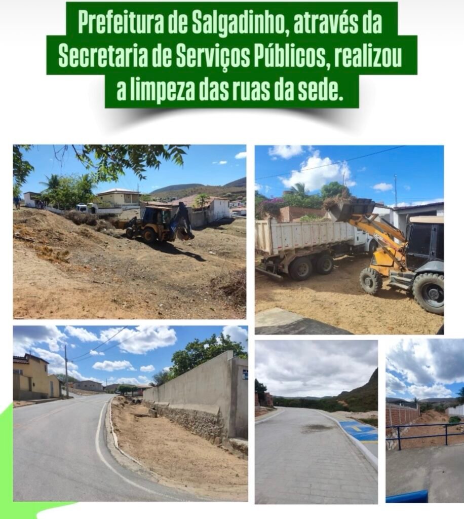 A Prefeitura Municipal de Salgadinho, por meio da Secretaria de Serviços Públicos, realizou recentemente um importante trabalho de limpeza das ruas da sede do município. A ação teve como objetivo melhorar a qualidade de vida da população, assegurando ruas mais limpas, organizadas e seguras.