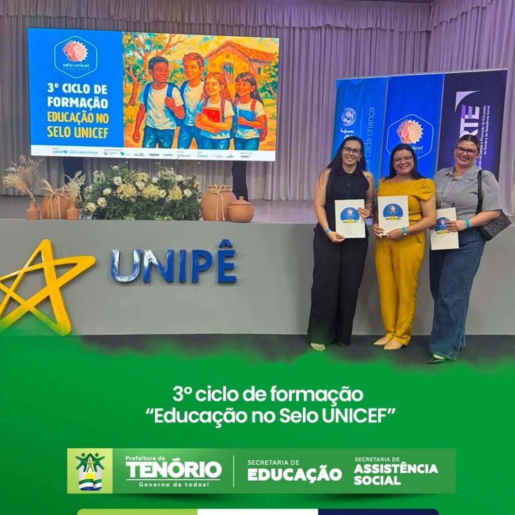 A Prefeitura de Tenório, por meio da Secretaria de Assistência Social e da Secretaria de Educação, marcou presença no 3º ciclo de formação “Educação no Selo UNICEF”, reafirmando o compromisso da gestão municipal com a garantia dos direitos de crianças e adolescentes.