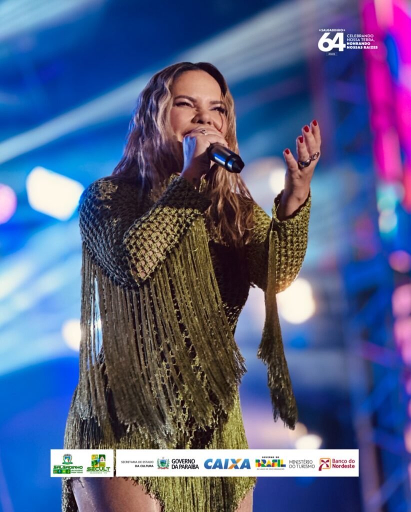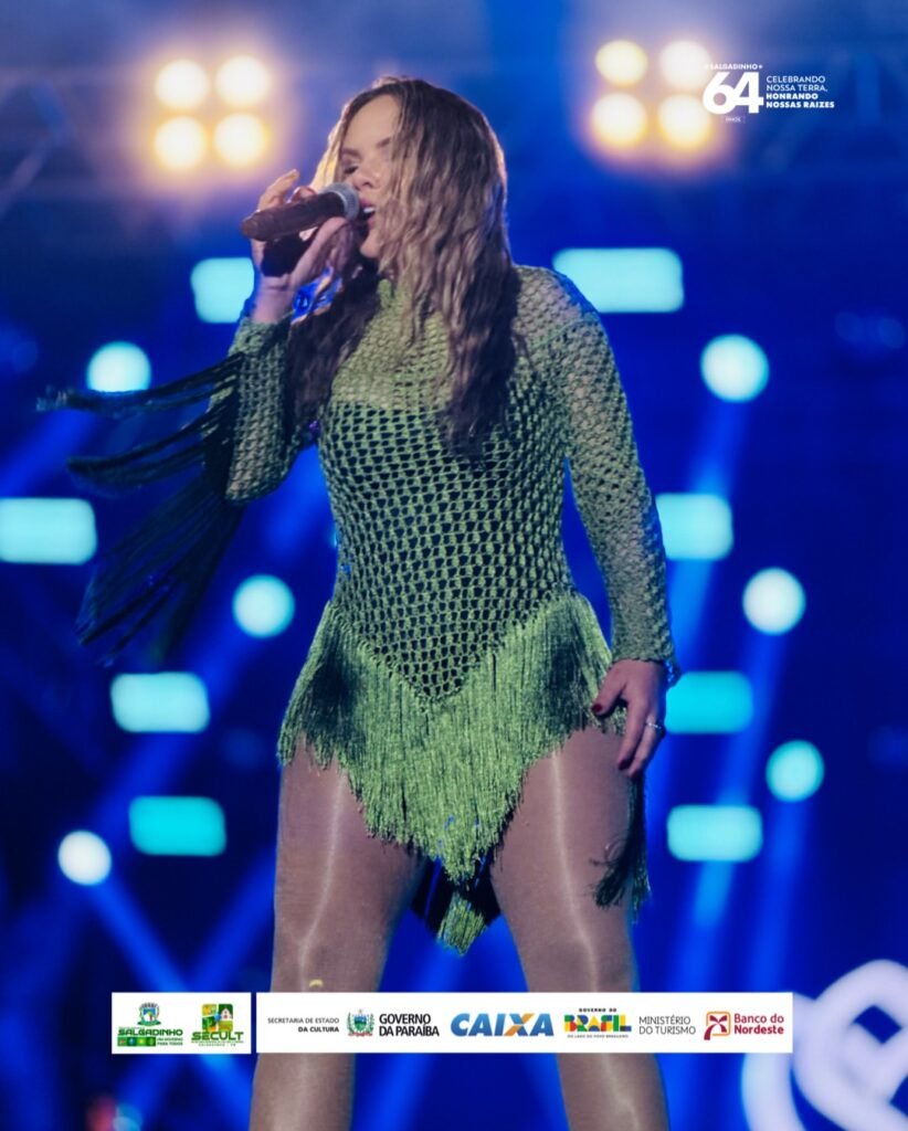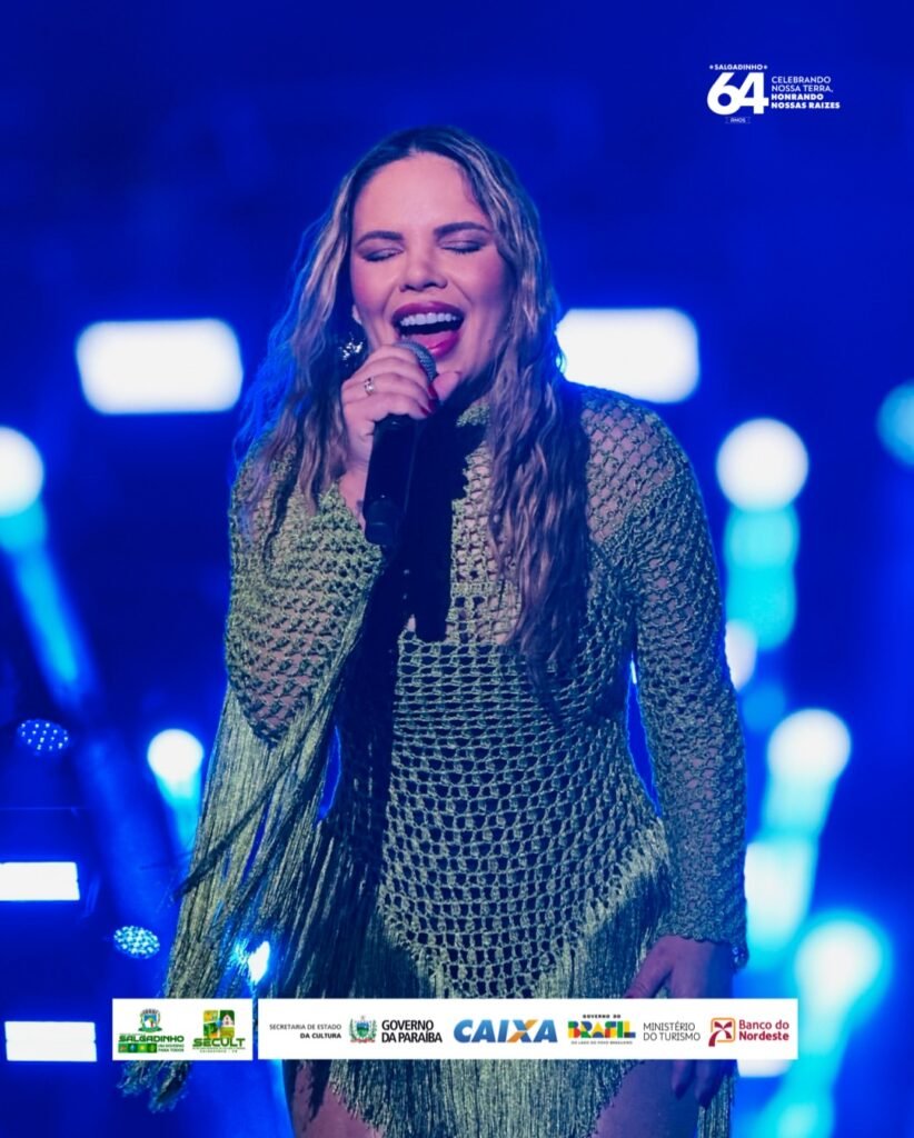 Conhecida por sua voz marcante e carisma no palco, a cantora fez o povo dançar e cantar do começo ao fim, misturando sucessos do forró com músicas românticas que já fazem parte do gosto popular. A energia contagiante tomou conta da festa e transformou a noite em um verdadeiro espetáculo.
