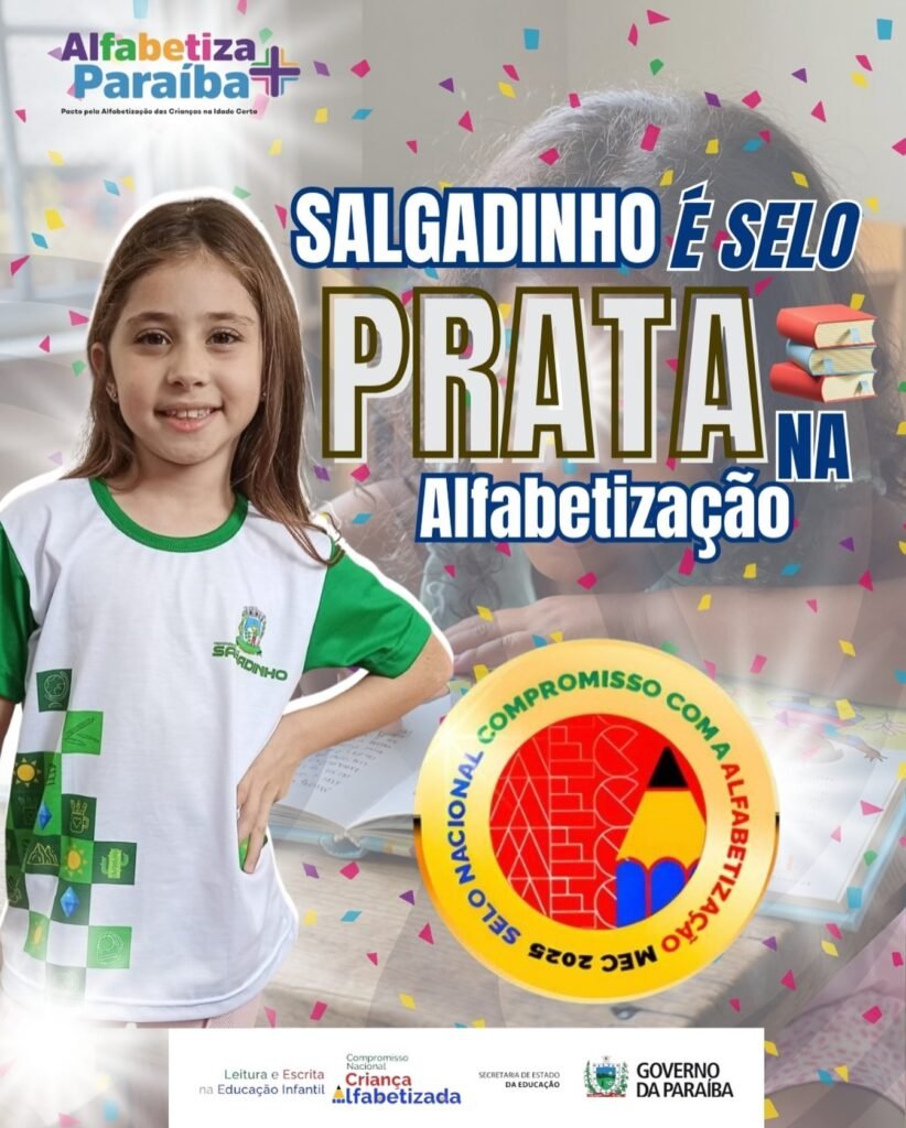 O município de Salgadinho foi reconhecido com o Selo Prata na 2ª Edição do Selo Nacional Compromisso com a Alfabetização, iniciativa do Ministério da Educação (MEC) que valoriza e reconhece as boas práticas de gestão educacional voltadas à alfabetização das crianças na idade certa.