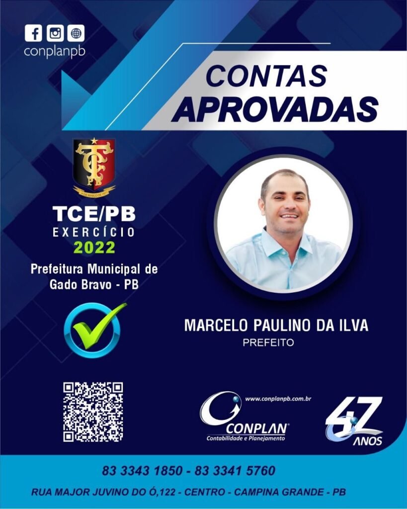 Agradecemos a toda a equipe da CONPLAN pelo empenho e dedicação nas atividades desenvolvidas com zelo e comprometimento e por fim agradecemos ao prefeito MARCELO pela parceria e confiança no nosso trabalho. Ficamos felizes em poder contribuir para o resultado final de excelência na gestão púbica municipal de Gado Bravo, com as contas de 2021, 2022 e 2023 aprovadas.