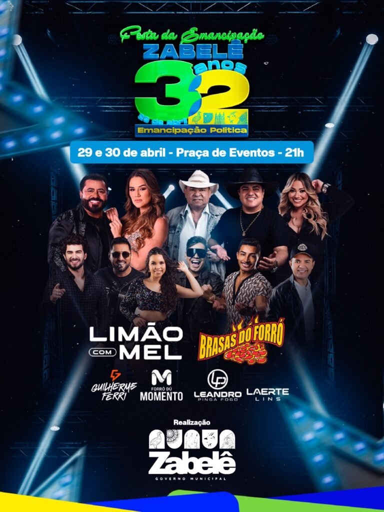 “Nossa cidade chega aos 32 anos em um momento de muito trabalho e desenvolvimento. Preparamos essa festa com muita responsabilidade e carinho para celebrar junto com o nosso povo. Será um evento seguro, com grande infraestrutura, para receber as famílias zabelenses e os visitantes de braços abertos”, destaca a prefeita Jorsâmara Neves.